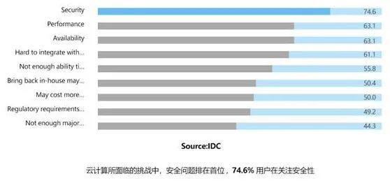 在云计算发展面临的挑战中,安全和隐私排在了首位。