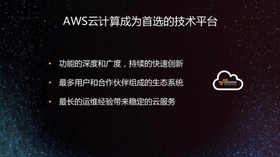 三周前,亚马逊在拉斯维加斯举行了第六届创新大会,提出两个观点,一个叫做云超能,就是云计算给IT行业带来的变化;另一个是云转型,帮助所有的企业进行数字化转型。